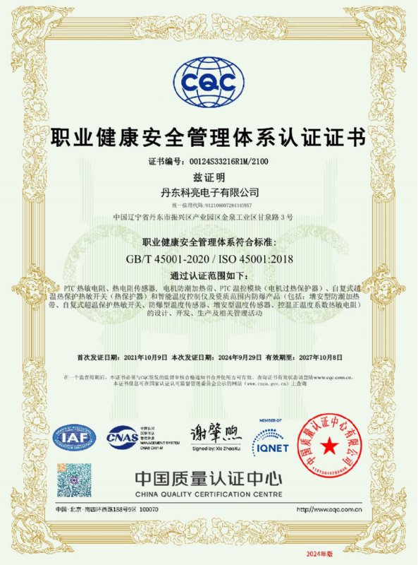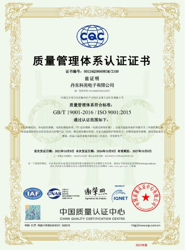 丹東科亮電子有限公司主要生產經營電機保護PTC熱敏電阻、電機防潮加熱帶、電機保護熱敏開關、電機軸承及線圈溫度數(shù)字顯示傳感器,以及與傳感器配套的智能溫度顯示儀表等產品,并可根據用戶需求,可以特殊定制。